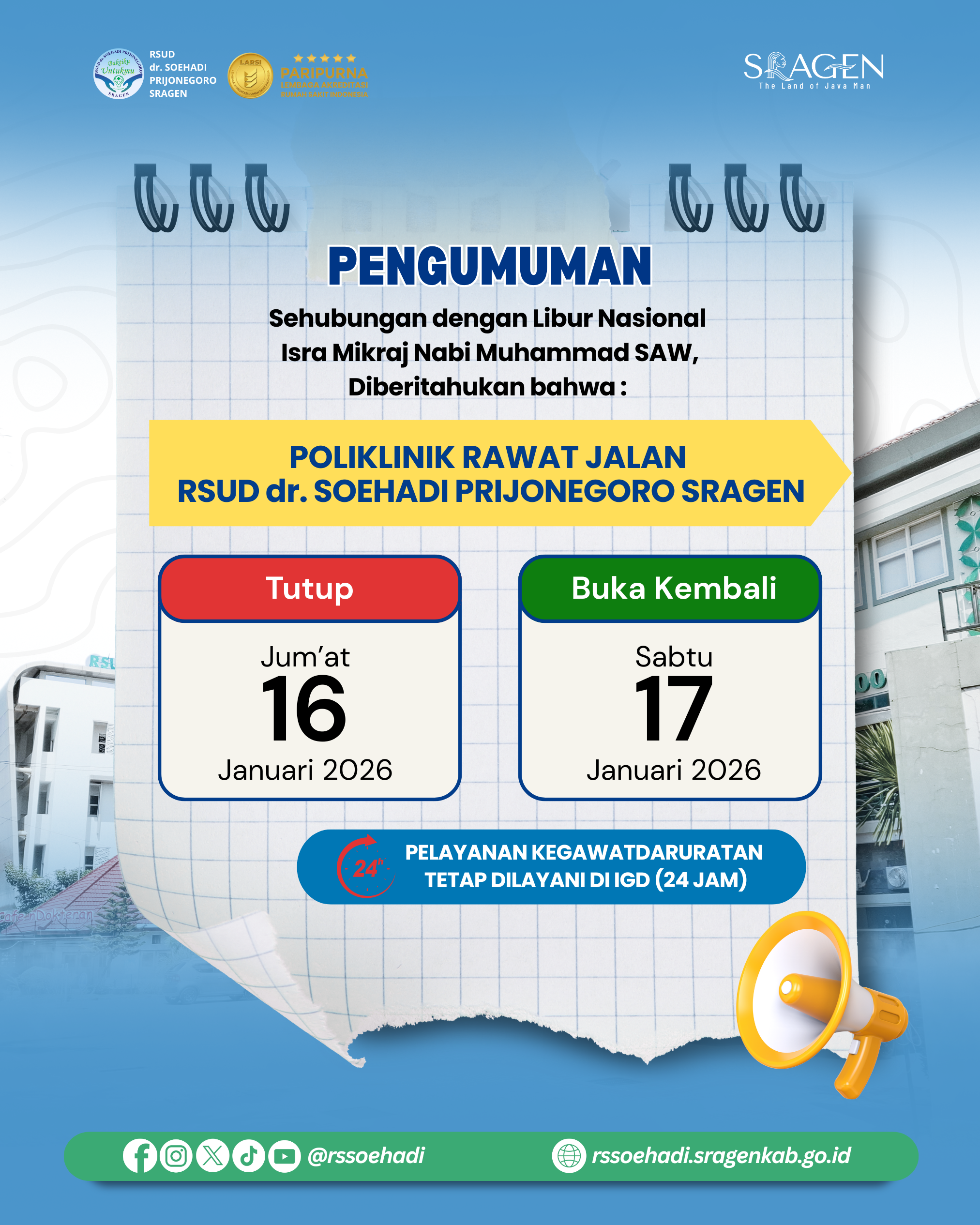 - 📢 JADWAL PELAYANAN POLIKLINIK RAWAT JALAN RSUD dr. SOEHADI PRIJONEGORO SRAGEN 02-01-2026