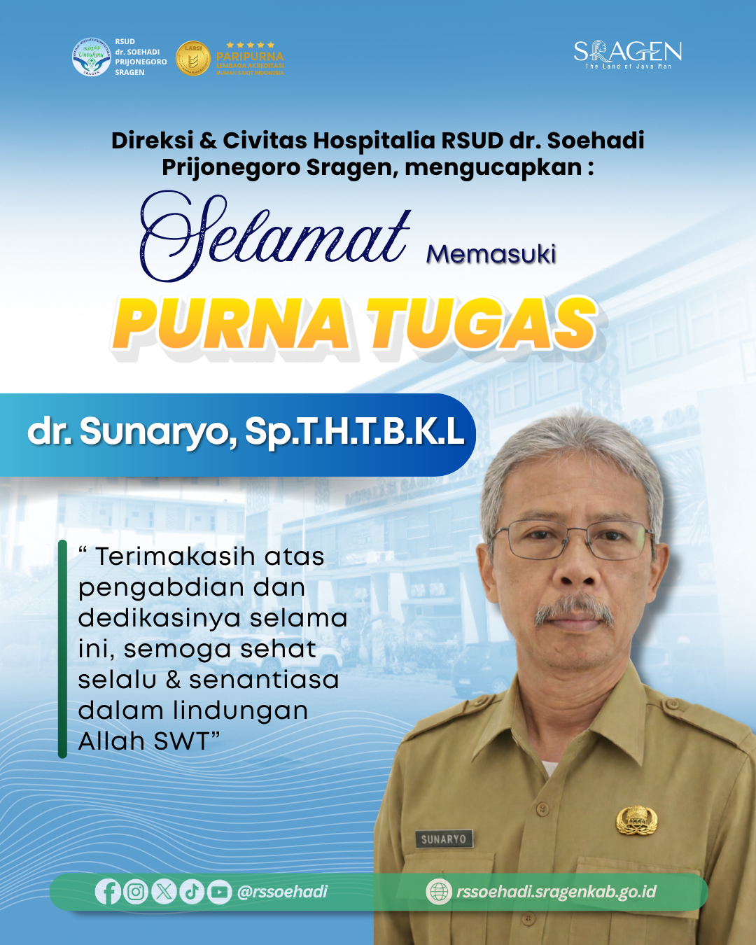 - Selamat memasuki masa Purna Tugas kepada Bapak dr. Sunaryo,Sp.T.H.T.B.K.L 01-04-2026