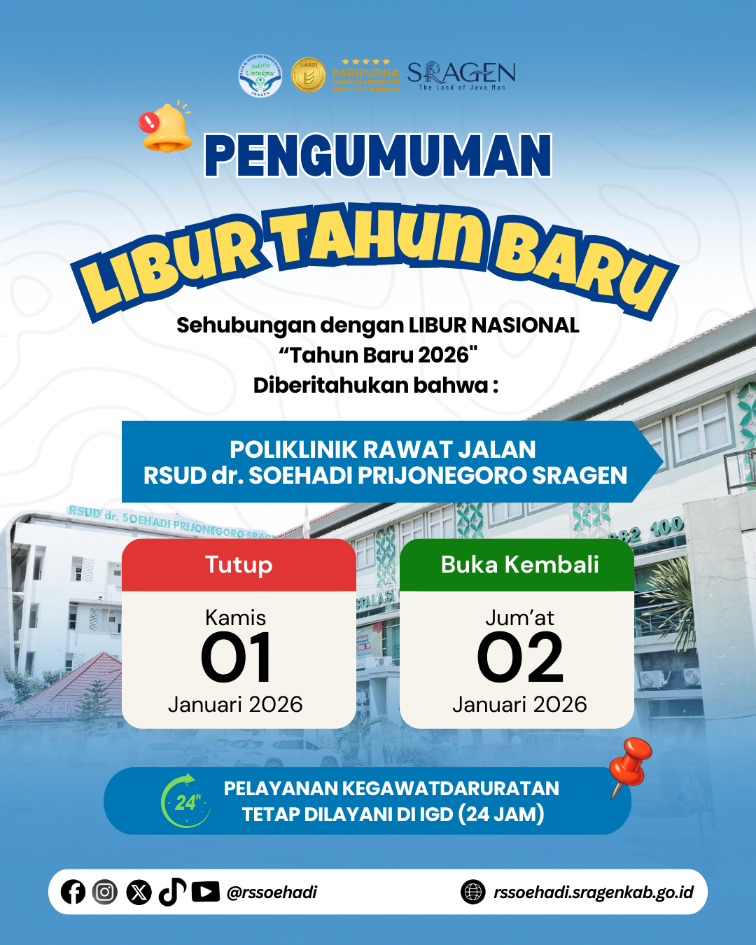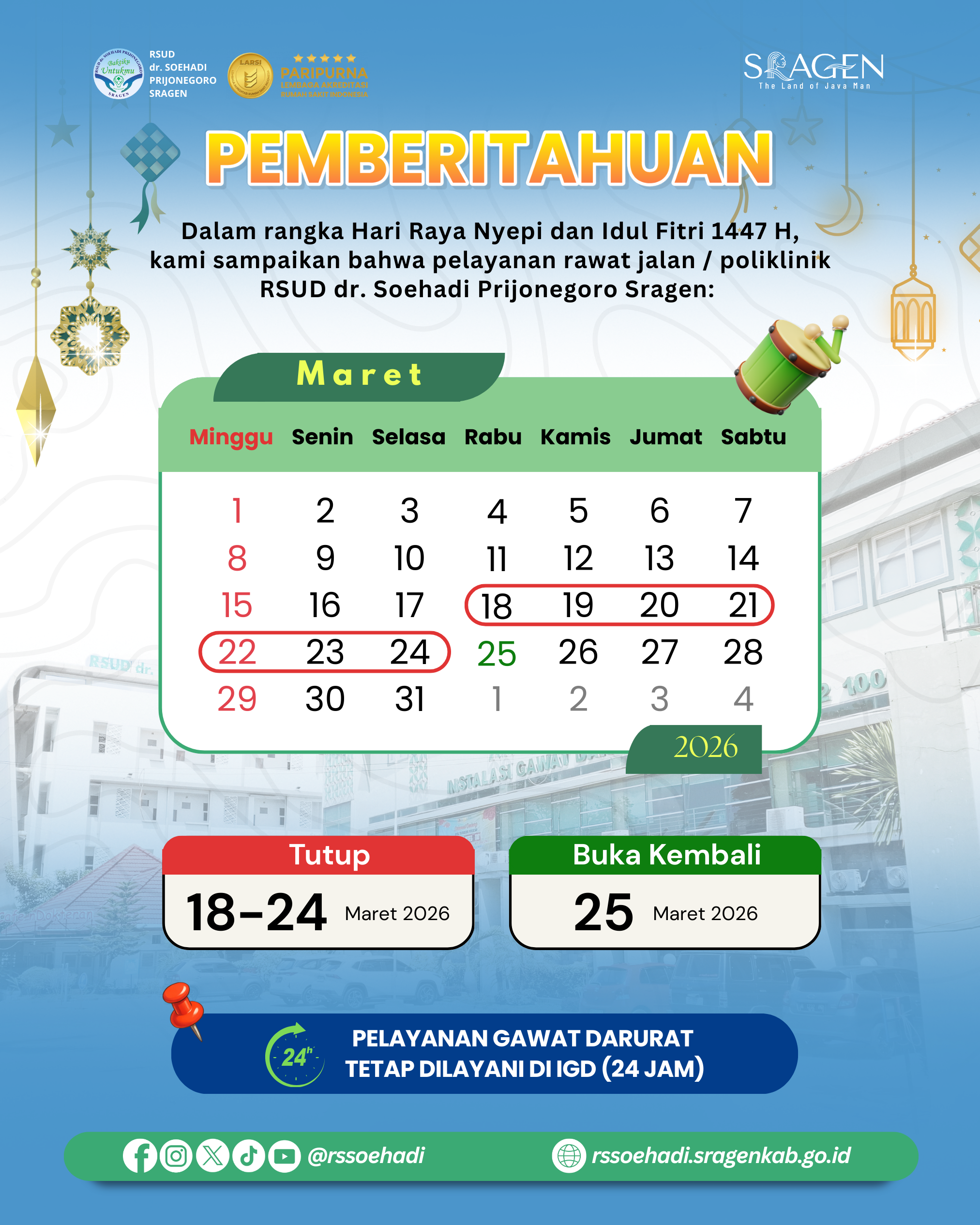 - PEMBERITAHUAN TERKAIT LIBUR NASIONAL "WAFAT ISA ALMASIH" #RSUDdrSoehadiPrijonegoroSragen #RSSPSragen #BaktikuUntukmu 26-March-2024