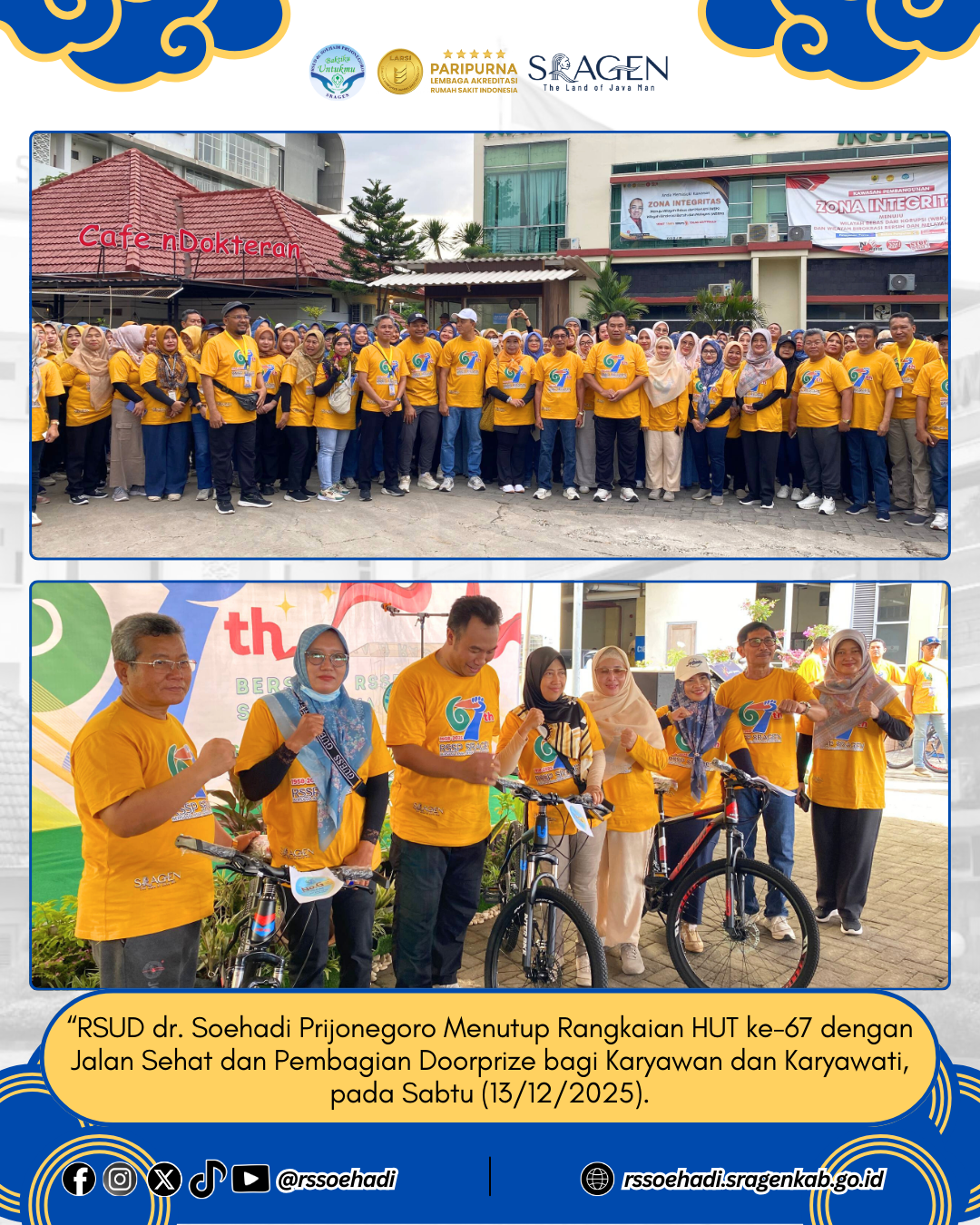 - RSUD dr. Soehadi Prijonegoro Menutup Rangkaian HUT ke-67 dengan Jalan Sehat dan Pembagian Doorprize 13-December-2025