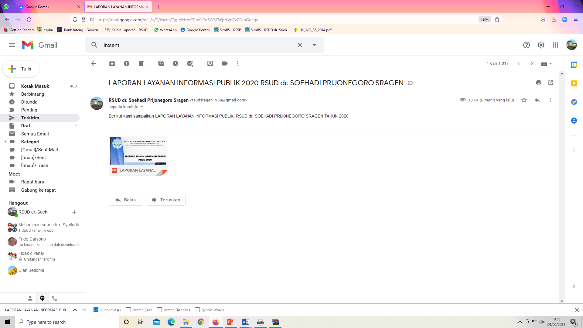 BUKTI PENGIRIMAN LAPORAN LAYANAN INFORMASI PUBLIK 2020
